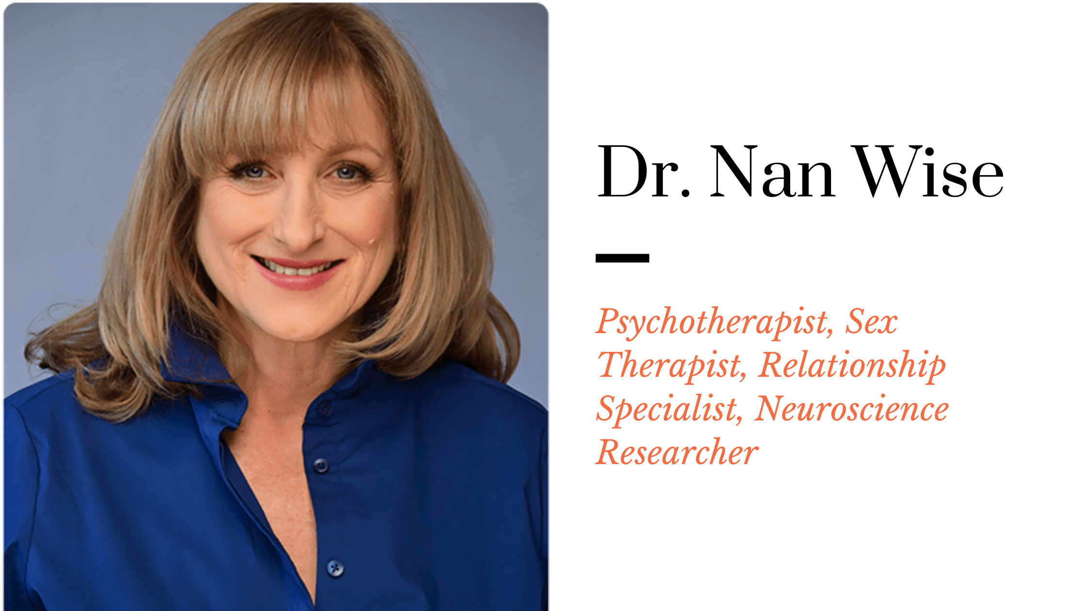 Dr. Nan Wise is a licensed psychotherapist, cognitive neuroscientist, certified sex therapist, and author of Why Good Sex Matters. With more than three decades of clinical experience and groundbreaking research on the neural basis of human sexuality, she is helping reshape cultural conversations about pleasure and mental health.